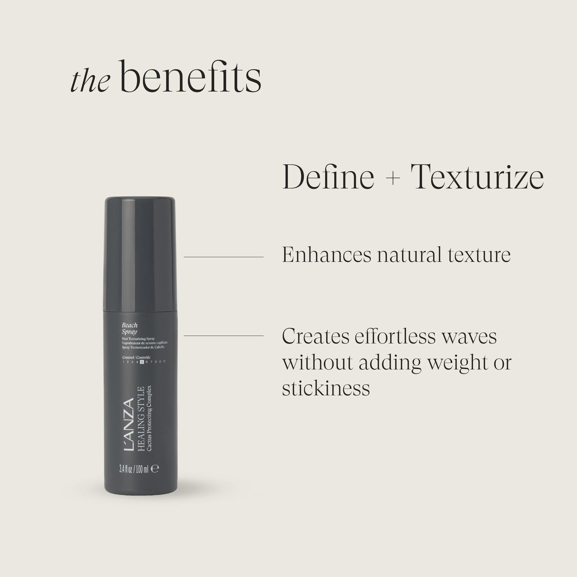 Spray-in texturizer creates sexy, tousled, windswept hairstyles.